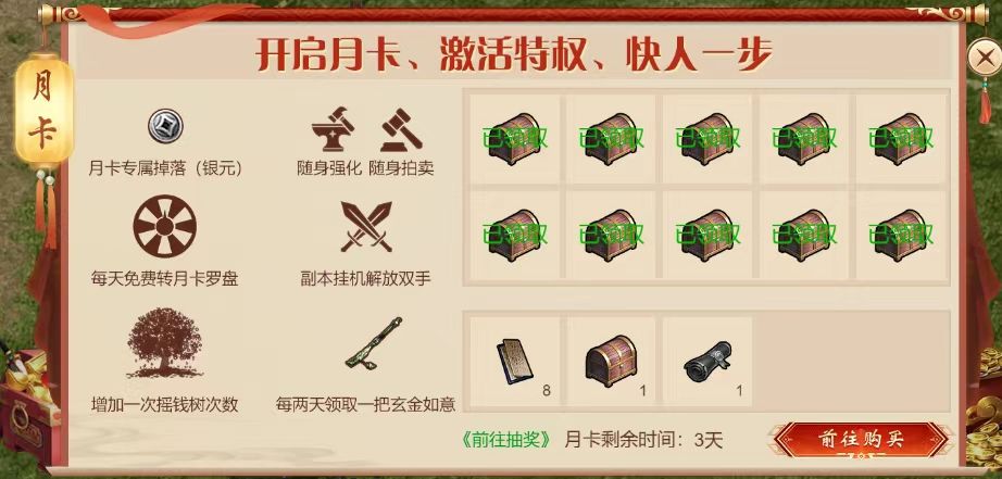 千年微变,登陆一层武功秒满,月卡党福音