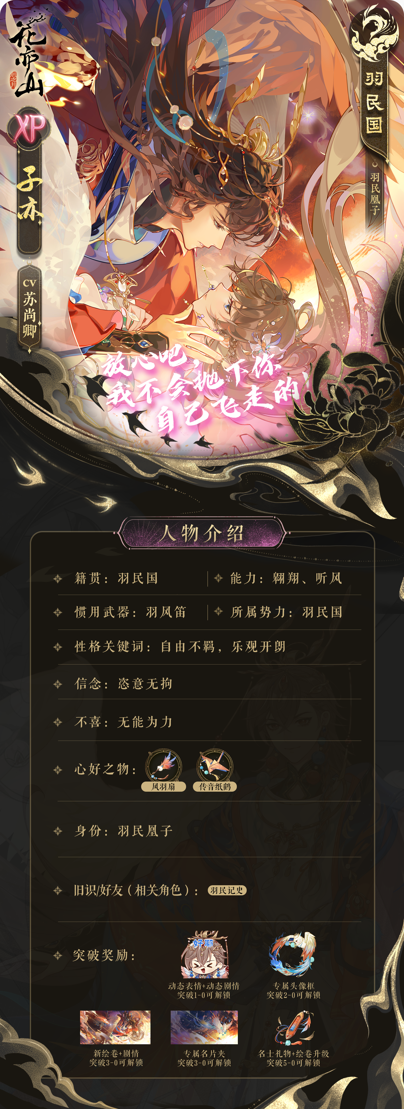 羽民国凰子,生性率真开朗,预言称重新苏醒的他将成为神子,带来奇迹与希望。