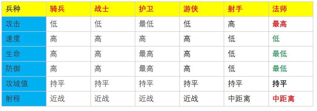 兵种属性在搭配阵容前,我们首先要了解法师兵种的属性特点,这样才能扬长避短,针对性搭配。