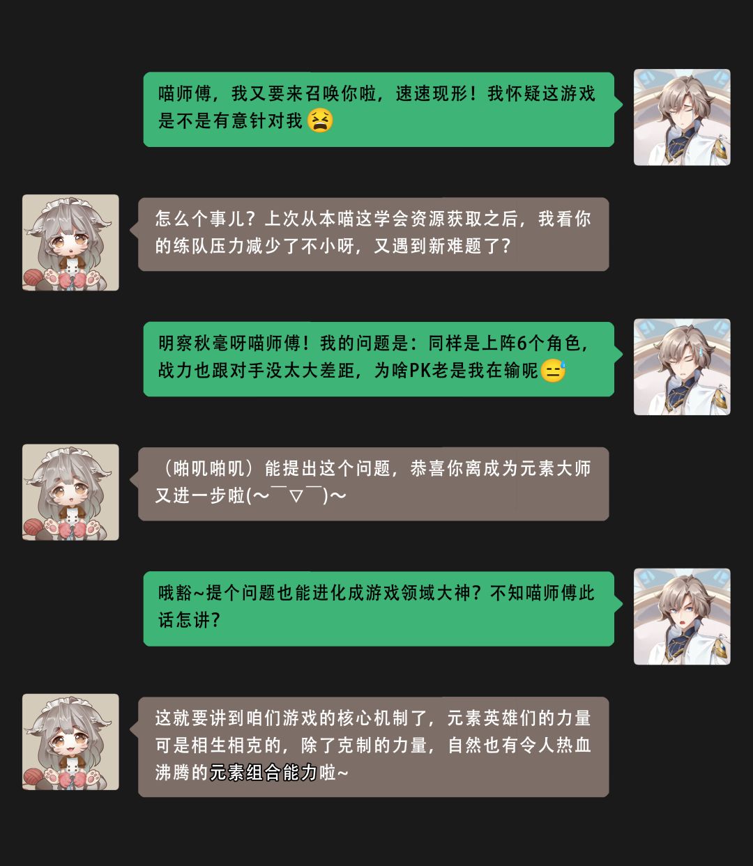 接下来跟本喵一起来了解一下游戏中的克制关系和元素组合能力吧(今天依然还会送出游戏礼包码哦!往下看~)