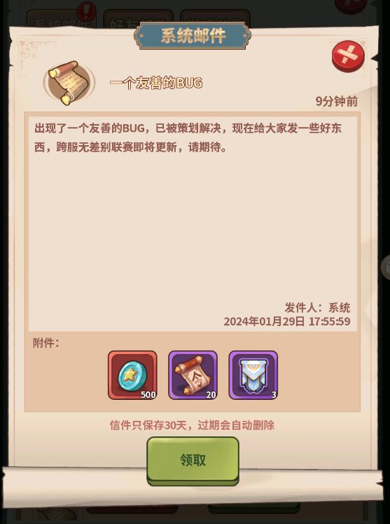 针对本次BUG已修复完毕,同时发放以下补偿内容: