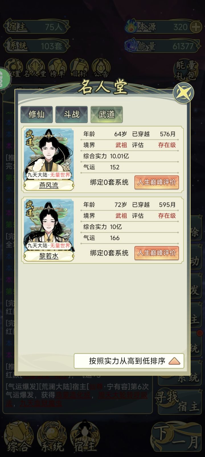 同理,如果是永恒世界的,需要4.9亿战力的时候下系统,永恒世界是5亿战力进名人堂。无量世界是接近9.9亿的时候下系统,无量世界是10亿战力进名人堂。