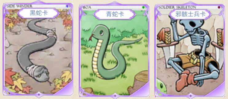 盗贼篇主手武器黑蛇卡:普通攻击有6%概率触发【二刀连击】效果(无法叠加)青蛇卡:物理攻击+10;攻击敌人时,有1%几率使敌人获得中毒状态(无法叠加)邪骸士兵卡:暴击值+6