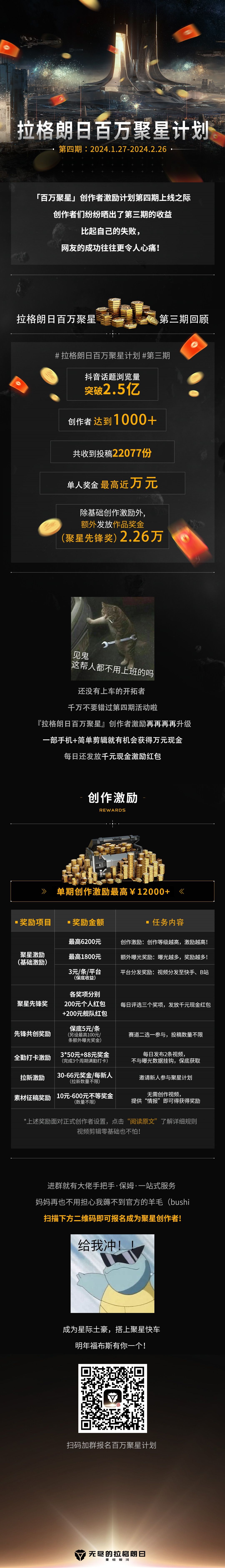 即日起至2024年2月26日,带 #拉格朗日百万聚星计划# 话题在官方指定平台发布《无尽的拉格朗日》相关原创短视频即可参与活动。掐指一算,单期奖励竟然高达万元!每日还有千元即时创作红包大派送!