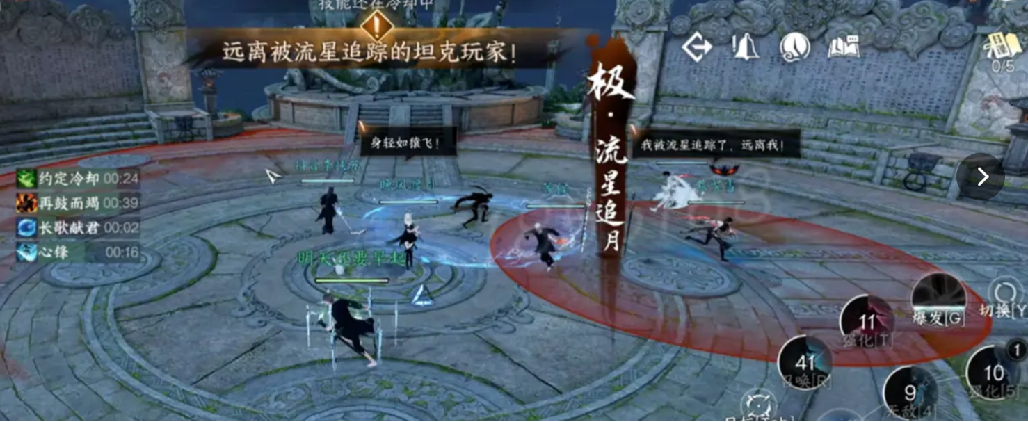 首先BOSS解除黑夜状态后,就会召唤流星锁定铁衣造成秒杀伤害,首先同时也会有一个大范围AOE伤害方式。我们应对方法:就是提前在地图标个点位,首先BOSS提示蓄力流星后,我们带着流星来到地图边缘开金刚铁壁和不动禅心技能抵挡伤害,一定要在流星掉落前开否则会秒杀铁衣。其他人到地图的另一侧躲避AOE,或者奶妈拉约定硬抗这次伤害。推荐DPS和奶硬抗一遍AOE试试,北巷打的时候所有人硬抗的掉血不多。就可以取得方法,