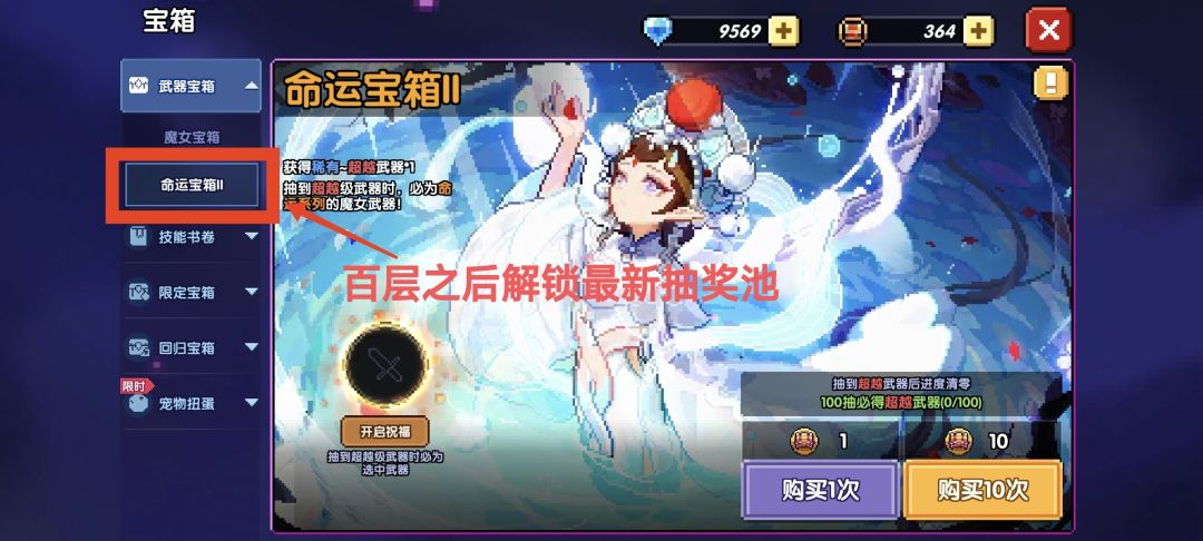 过了100层,才会解锁最新流派抽奖池,最新流派永远是最强的,抽就完事了
