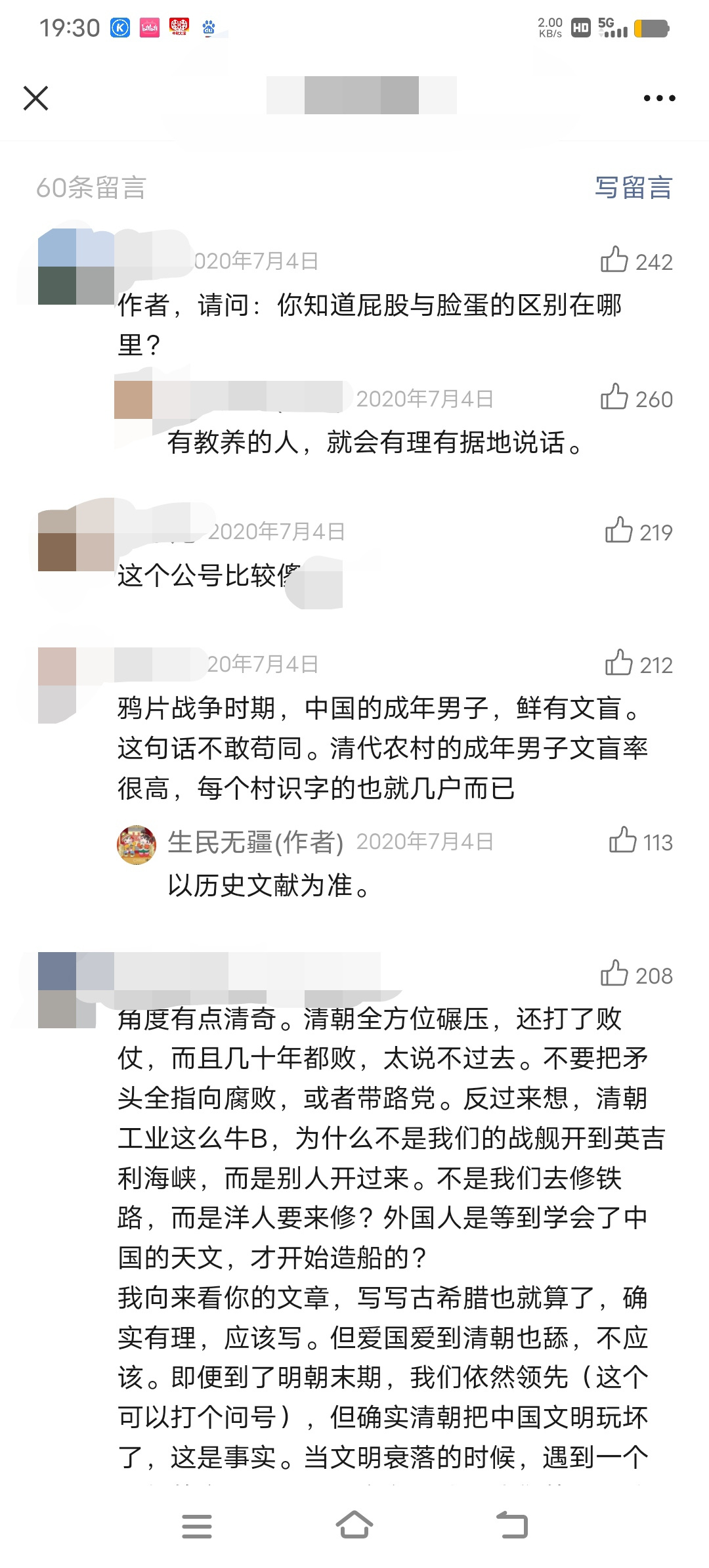 打一个比方,如下文章是某个著名伪史论公众号在2020年时发布的一篇文章,之所以选这篇文章来打比方,原因就在于这一篇的荒谬成度基本上是一下子就能看出来的,“连**战争时,中国的成年男子,鲜有文盲”这种**言论都敢整出来