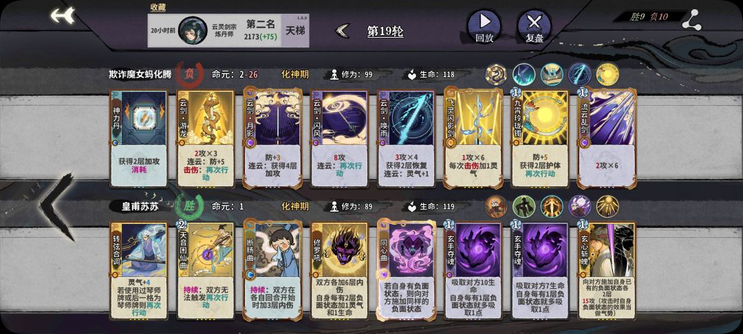 后三个是固定套路。灵感剑极大提高飞灵闪影剑触发击伤概率+增伤,飞灵闪影剑加蓝+破防破护体,万法秒了。万法来之前可以考虑白鹭灵剑(下位替代),不过需要安排再动卡,不能空位置,因为一轮秒不了。