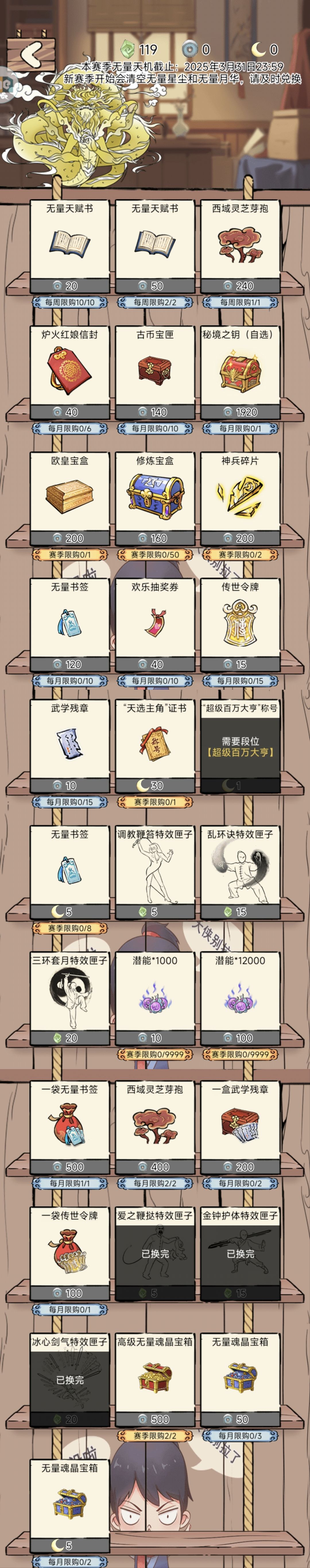 门口商店物品(每赛季初货币清零,购买次数重置)