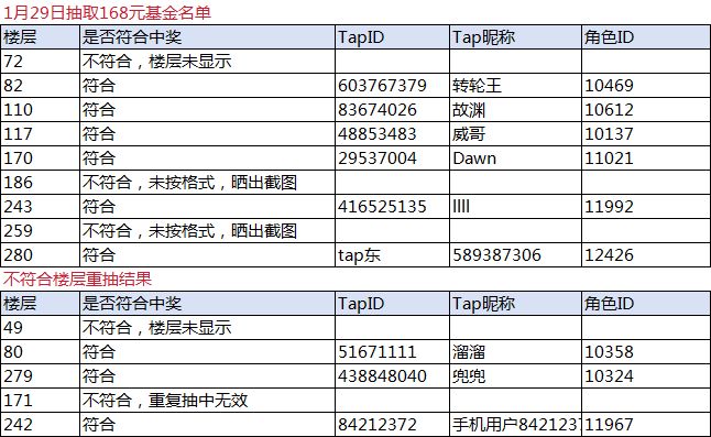 中奖名单丨1月29日【168元基金】中奖结果公示