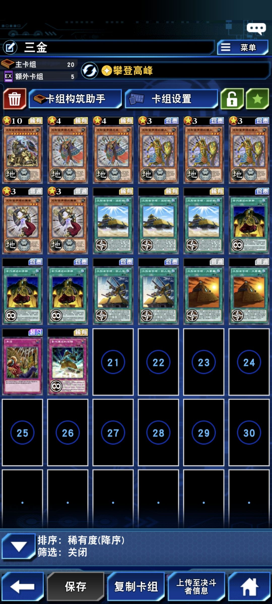 三型金字塔,俗称三金。卡组很全面。有打点,有炸卡,还有三封,操作简单。关键还还便宜,适合新手。不过随着版本更迭,新手是否抽取,还得多看看其他攻略。