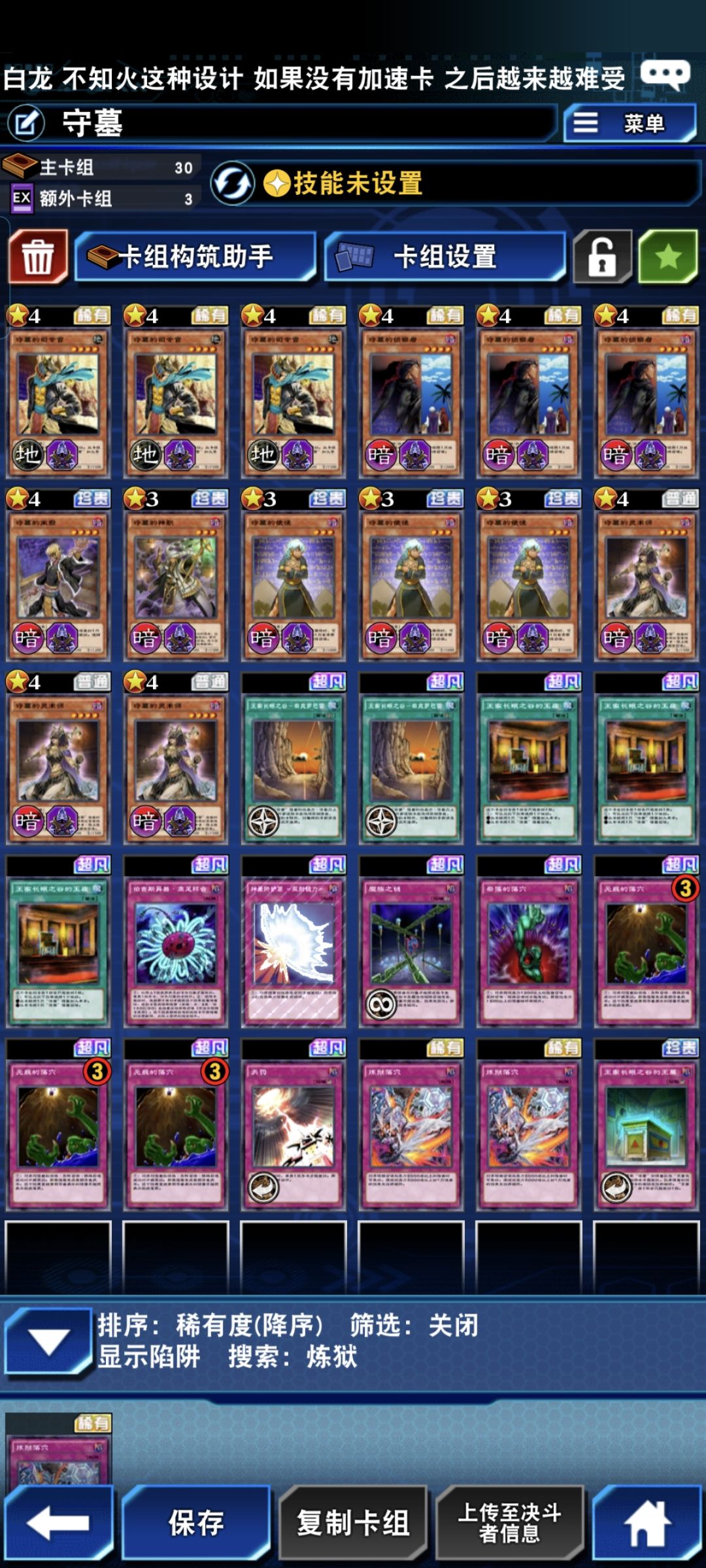 守墓,属于是针对性卡组,只要墓地活跃的卡组多,守墓就能拿出来玩一玩。