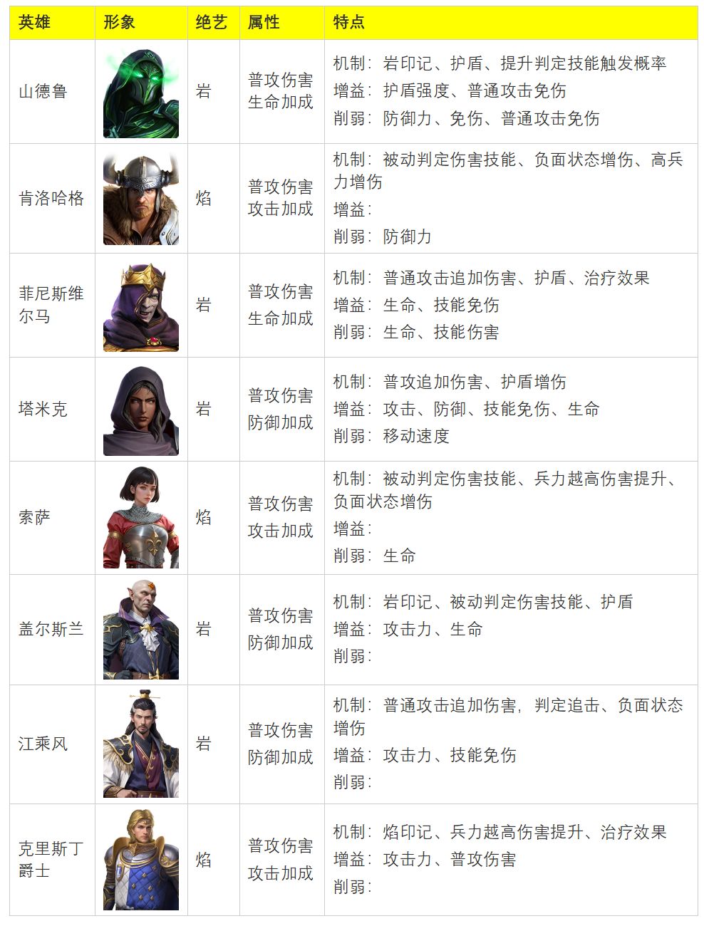 - 光明剑士、山德鲁、盖尔斯兰都可以为队伍添加岩印记,触发山德鲁被动,岩印记层数越多,则显著增强全队护盾强度机制,加强全队生存,吸取伤害。