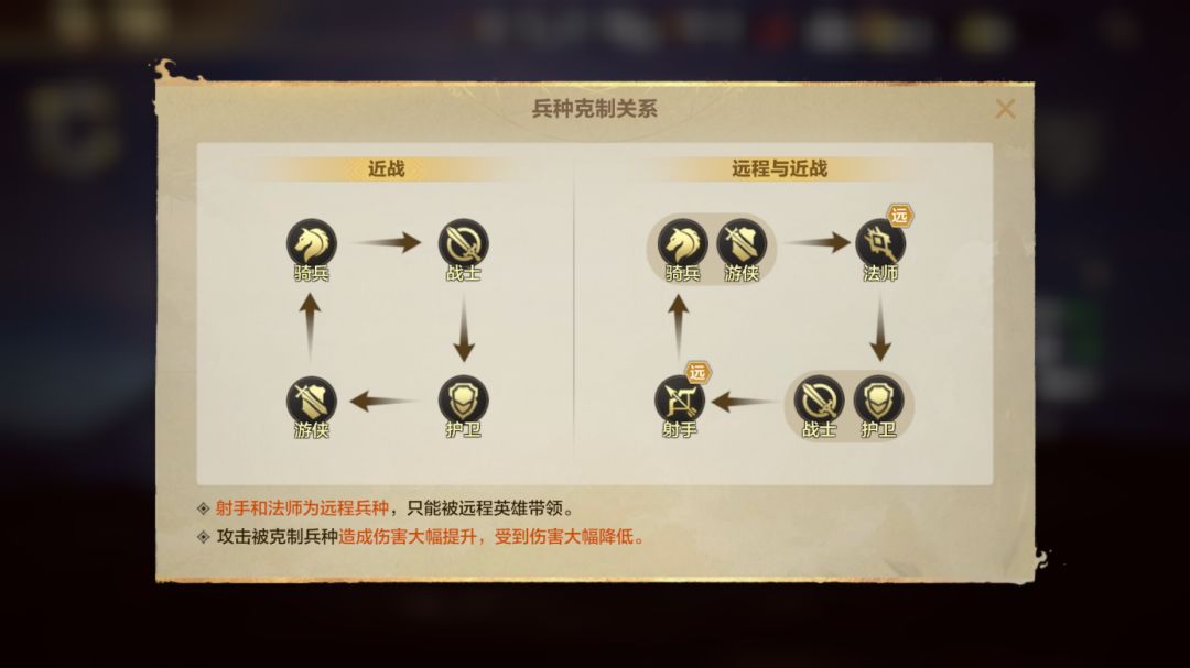 由属性对比可知,护卫兵种优势在于防御高、生命高,缺点在于攻击属性较低,因此护卫队伍应该以承伤定位为主,加强自身坦度发育,在战场尽量以前排为主,为我方吸取大量伤害。克制关系