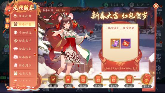 活动期间,每天会解锁一个新春红包,每日首次进入新春红包界面可领红包,红包内包含大量唤灵符、鞭炮、集字道具等道具哦~
