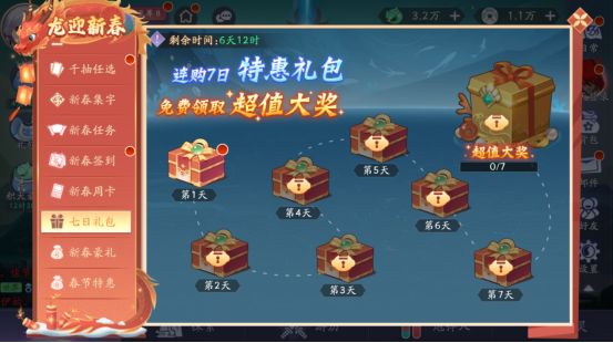 活动期间,每天会解锁一个特惠礼包,连续购买7天特惠礼包可免费领取超值大奖,每日礼包包含大量三系sp碎片自选、鞭炮等道具哦~