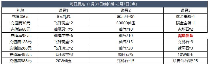 【活动时间】1月31日维护后~2月7日5点