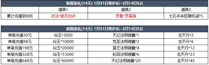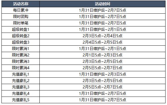 【活动时间】1月31日维护后~2月1日5点