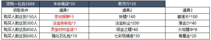 【活动简介】活动期间内,道友们可购买活动界面的团购商品。当购买团购商品的人数达到一定数量时,购买过该商品的道友们可以额外领取相应奖励。
