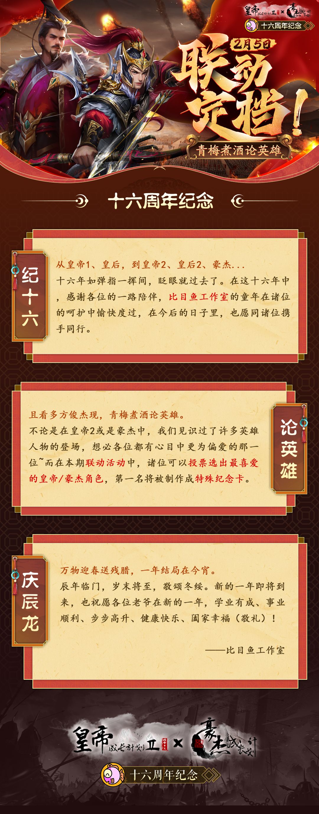 比目鱼十六周年纪念,《皇帝2》x《豪杰》二次联动强势来袭!2月5日正式上线!