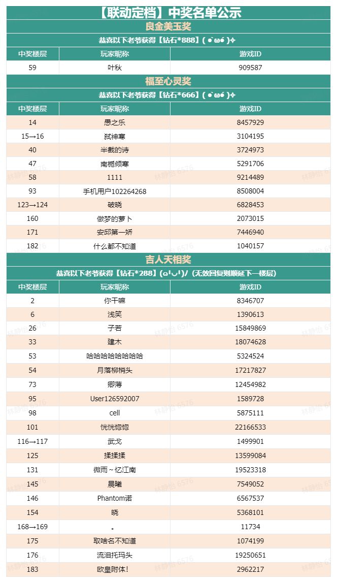 抽取20位幸运老爷:钻石*288