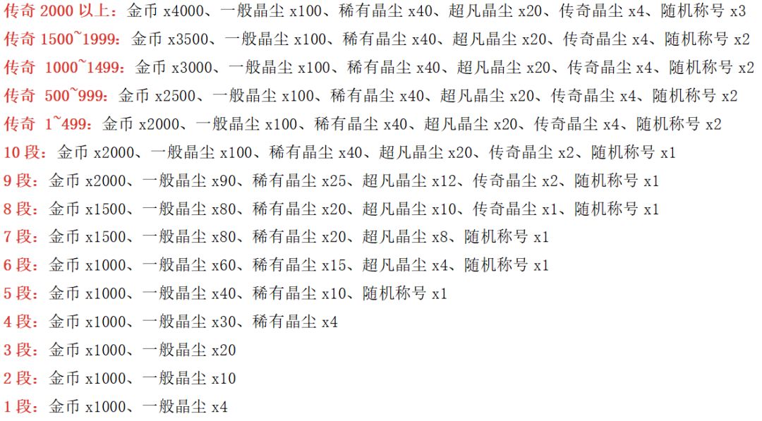 5、段位奖励(按赛季结束时的当前段位结算):