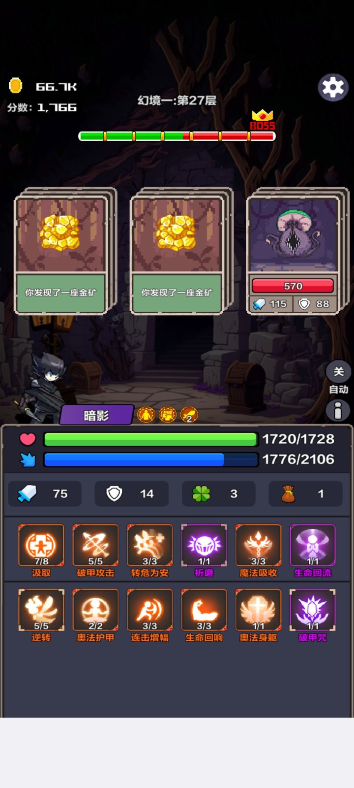 刷技能:逆转+炼金 ,凑足这两个,就可以无限刷金币了,一次得1500金币,遇到商店买买买,几轮就可以把技能补齐,等级补满
