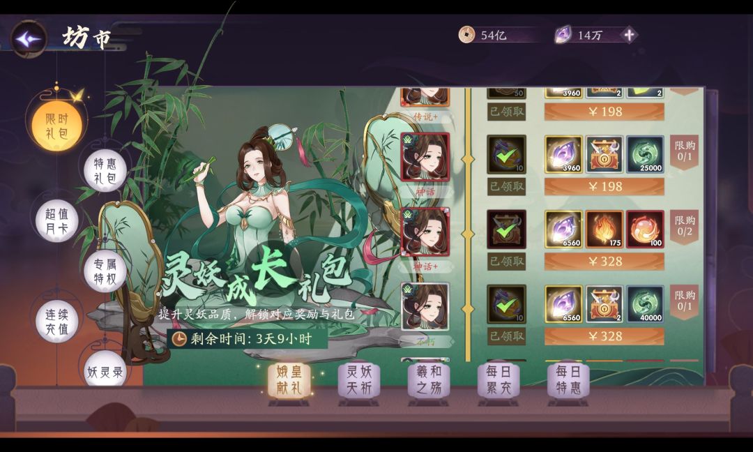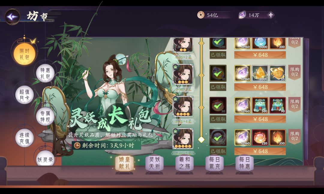 温馨提示:可优先把限定灵妖提升至神话、不朽、三星不朽,白嫖离仑珠更香