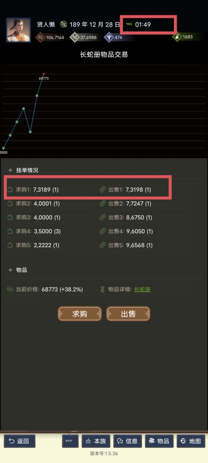 4.因为我要买,点击求购,输入73189挂单(68773没截到图,再买一个