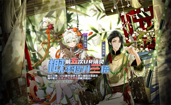 活动描述:春节期间,开启概率递增卡池,UR飨灵-鸳鸯鸡粥和SR飨灵-小吊梨汤限时加入卡池,御侍大人使用专属道具进行召唤,该卡池UR飨灵抽取概率大幅度提升,并且随着抽取次数的增多,UR飨灵-鸳鸯鸡粥的抽取概率也会随之提升。PS:鸡鸭鹅跑出去拜年啦~