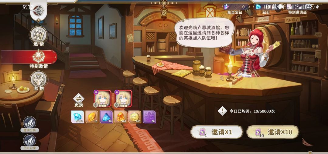 然后继续推图解锁专属抽奖,这里钻石就排上用场了,每次3000钻,如果出金就是它,不会歪这点很好,一天抽满可以出3张安娜,突破安娜到10阶开符文,再抽几张达达突破到6阶保证坦度,剩下的辅助看情况抽,可以带你平稳度过前期所有副本。