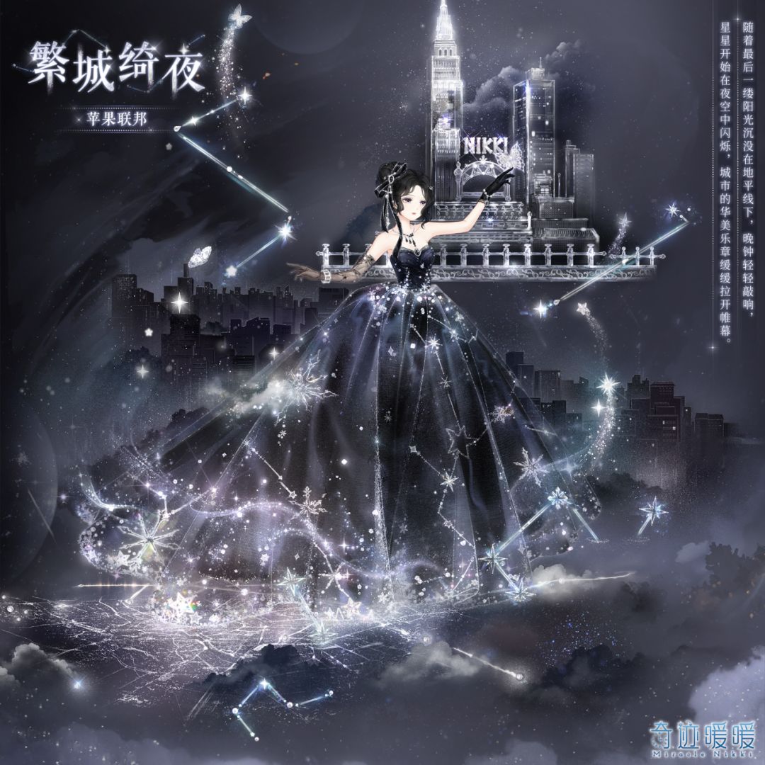 【繁城绮夜】含正常姿势与特殊姿势,全新妆容“流转眸光”,特效下装“交织银河”,特殊姿势手套“永夜华章”,特效摆件“皎如日星”、“璀璨彼岸”、“阡陌流华”、“幽夜靡城”。达成套装成就可领取特殊姿势部件。
