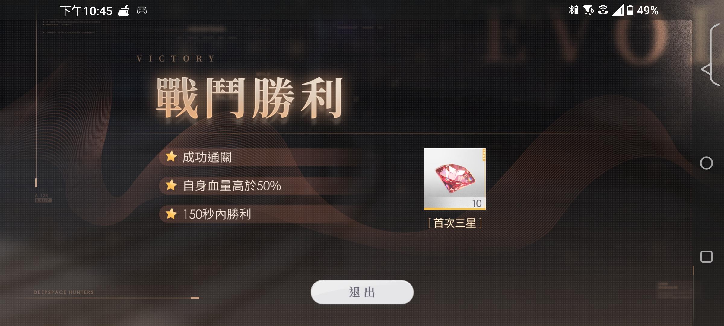第三次用的是手中最强的卡牌,没凑共鸣,2绿2黄,剩33秒三星通关,用的是黎深的黑大衣,共鸣技能可以回9千到1万不定的血量x2(好像)