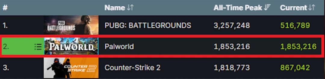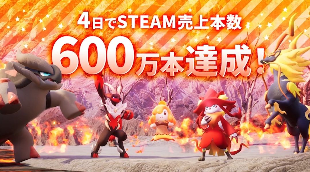 《幻兽帕鲁》,任天堂叛忍新作,1月19日抢先体验,一天销量破200万,三天500万,四天直冲600万。