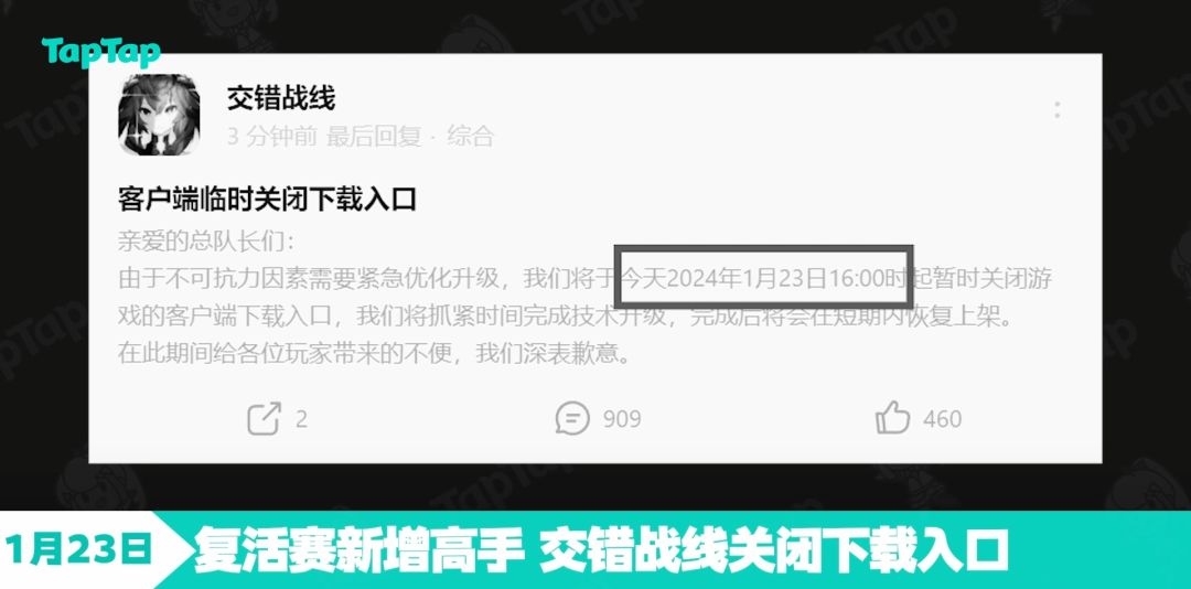 不过对于已经下载的玩家来说,关闭下载渠道对他们没啥大影响,技术升级的理由也算是给自己的回归留了点后路,还是有机会打赢复活赛嘛。