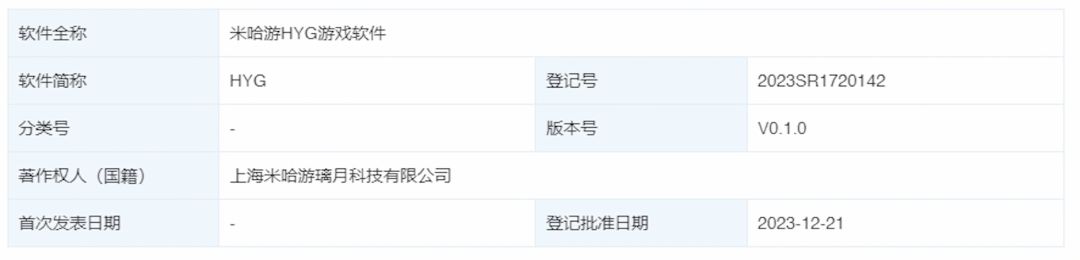 最近有玩家发现,名为“上海米哈游璃月科技有限公司”的企业,在2023年12月登记了简称为HYG的游戏软件著作,这意味着米哈游有可能在《绝区零》之外,还将推出新的游戏。
