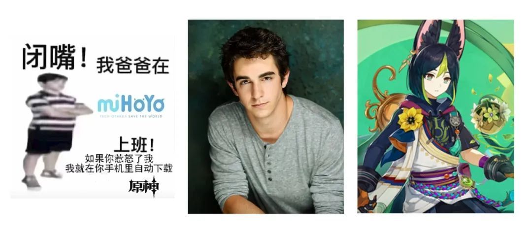 当然,除了上面的消息,米哈游在场外还爆出了一个小小的乐子。一度传播很火的“我爸爸为米哈游工作”表情包,里面的男孩是原神提纳里的英文配音,没想到吧,他真的在为米哈游工作。
