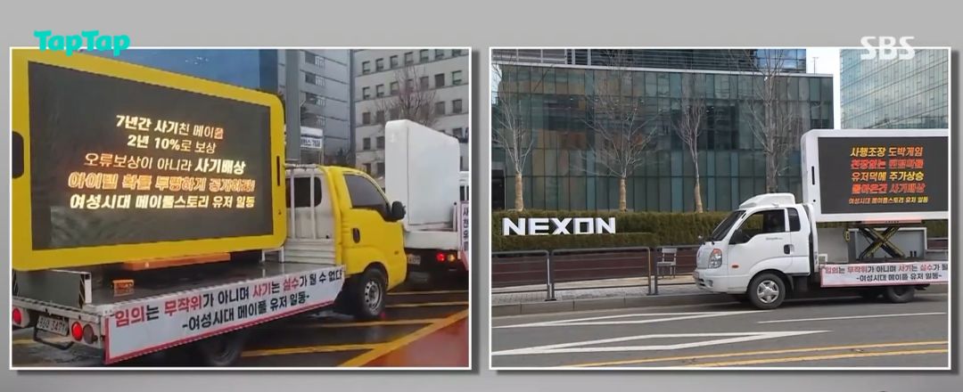 玩家也不是傻子,一群人10年里真金白银砸下去啥都没捞到,肯定会怀疑NEXON整了什么烂活,光是卡车冲锋都发起过不止一次,规模大到还上过电视新闻。