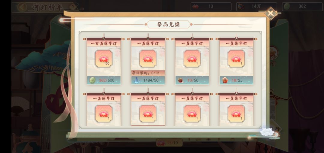 580-475=105盏灯,可见首先梦魂换灯是必要的。梦魂每日最多兑换12盏,七日最多兑换84盏,当然前提是有4800梦魂的储备。杜甫的三技能这时候就派上用场了。只要不是运气特别不好,十次免费刷新次数中应该能出现一些只包含后三间工坊产物的灯,可以做日常同时刷梦魂。
