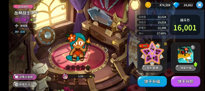 那就是丛林战士饼干,我虎神,技能强控加上一条假血完美契合了蛋糕塔的环境,不知道大家有没有发现,蛋糕塔很少因为超时而失败,最大的失败因素是被小怪超高的伤害灭队,所以保护前排不被秒进而为金桂输出提供环境成为了关键成为推图关键,那么丛林战士饼干就能很好的完成这个任务,面对开局冲撞或者钻地突击的怪,在怪放出技能前直接丛林饼干开技能拍晕(注意全程手动,把握时机)。而培养上推荐给虎神带上一套冷却,加6就够用,饼干等级拉满,技能等级和星级可以不怎么升,可以说性价比和功能性直接拉满的一位饼干,快去试试吧!