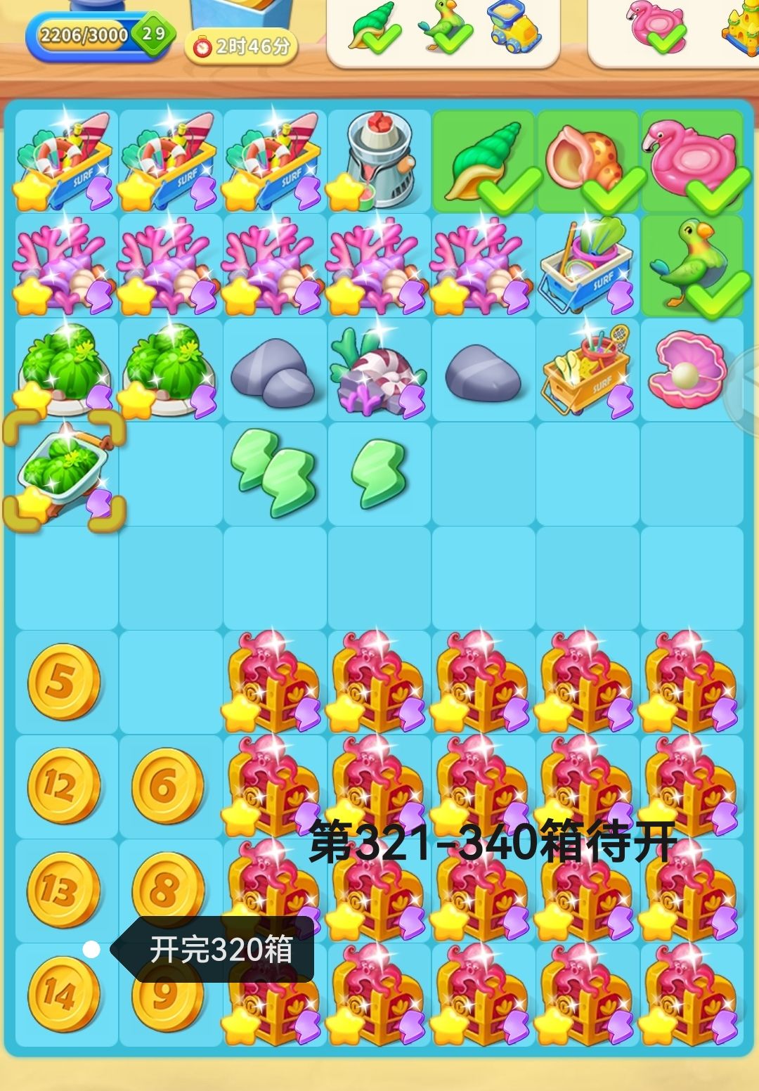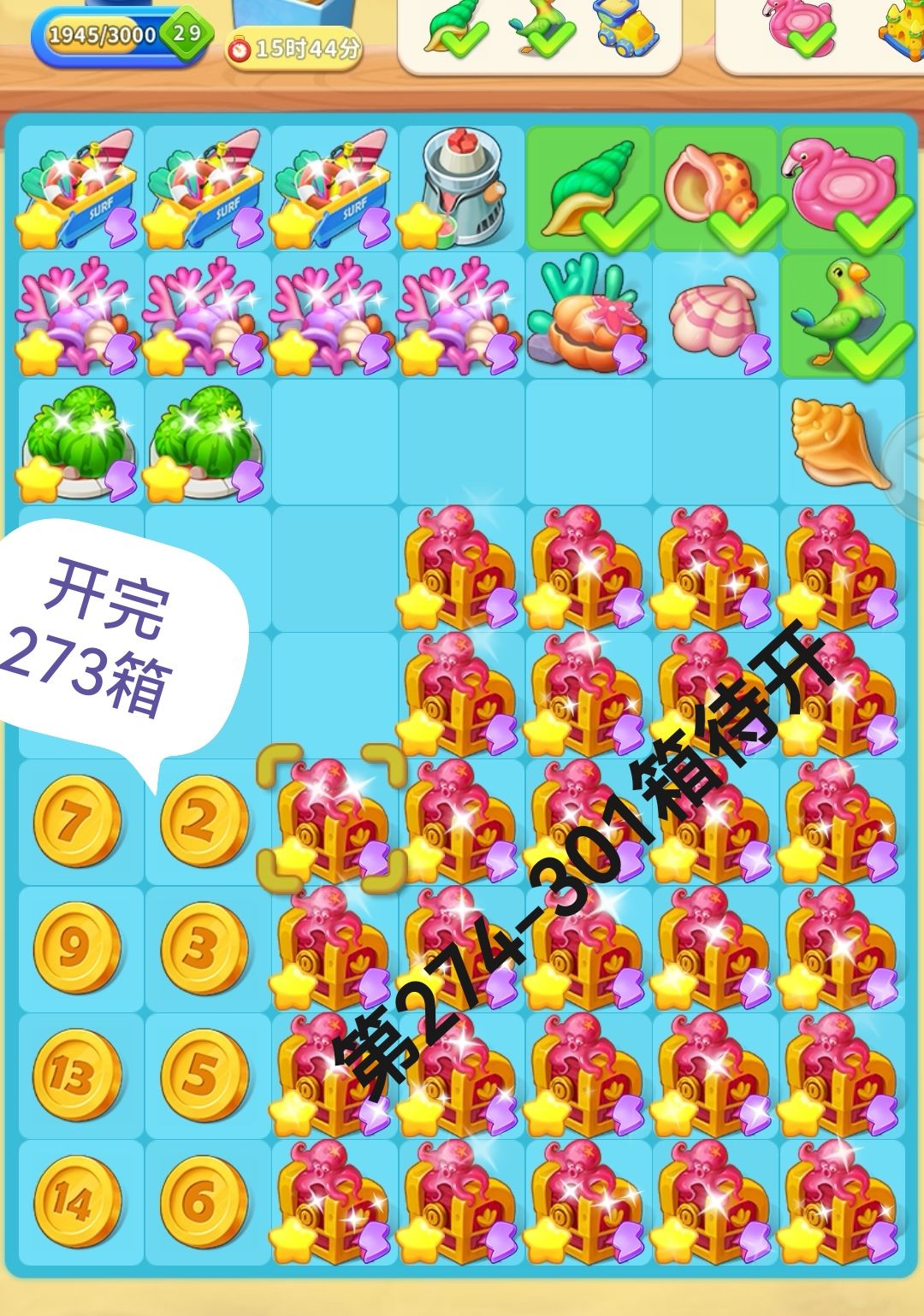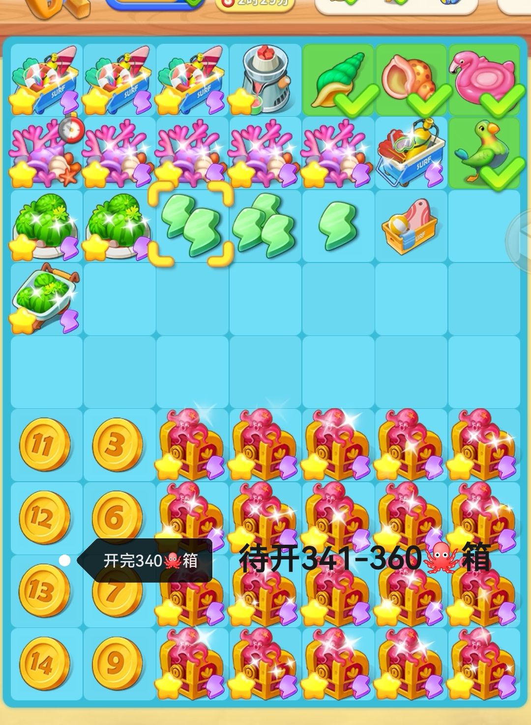 1.先用一周多的时间升级珊瑚礁四五个7级的,尽可能多的提前囤🐙箱子(沙滩倒计时结束后,不会被回收)重新挑战 新的一周再开箱