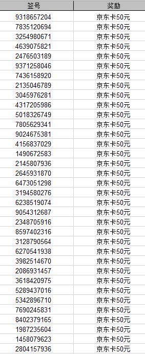 50元京东卡获奖玩家截图