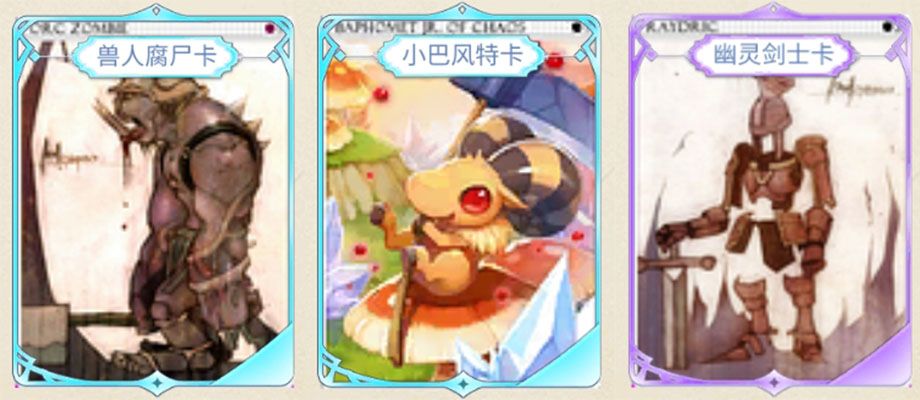 披风兽人腐尸卡:闪避值+1;不死系怪物免伤+2%小巴风特卡:敏捷+1;暴击值+1幽灵剑士卡:无属性减免+5%