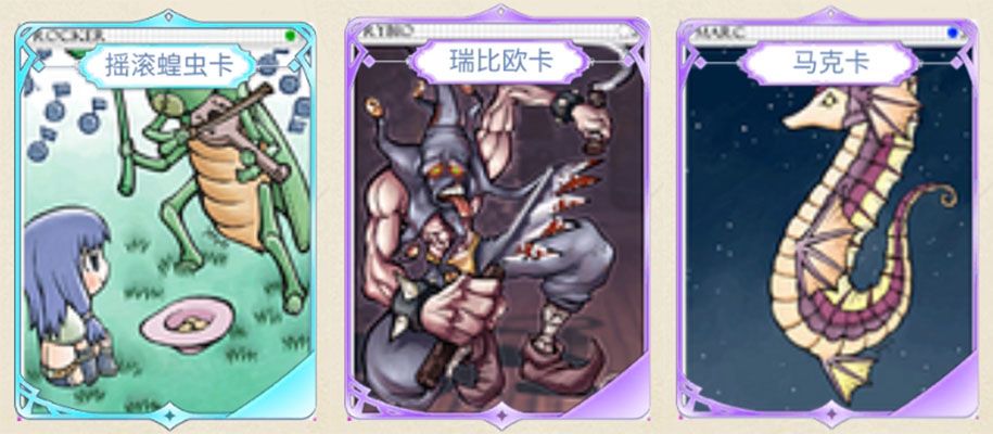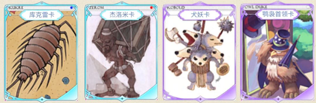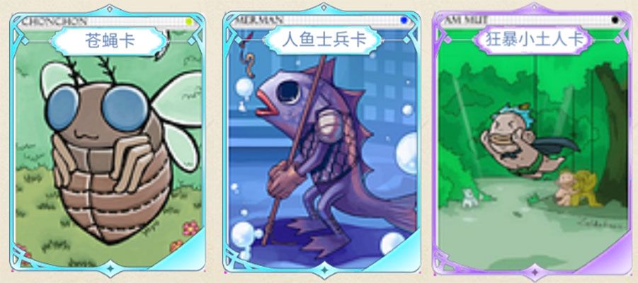 靴子苍蝇卡:敏捷+1;闪避值+1人鱼士兵卡:药品生命恢复+2%,药品法力恢复+2%狂暴小土人卡:击杀人型系怪物后获取的经验值增加5%,持续3S;对不死系怪物伤害加成+5%
