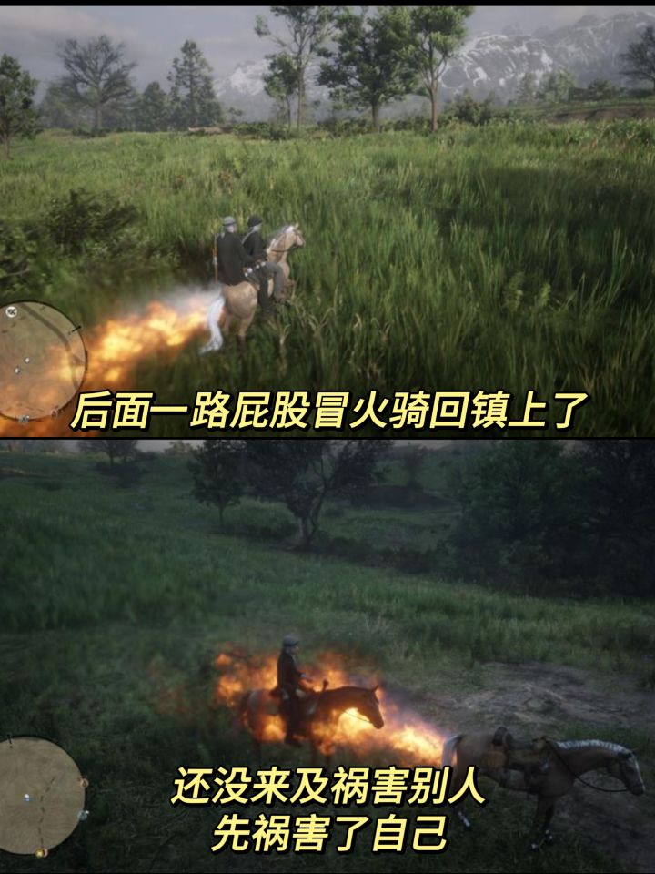 于是和搭子兴高采烈地准备扛到镇上祸害NPC,结果玩着玩着马屁股也着火了。