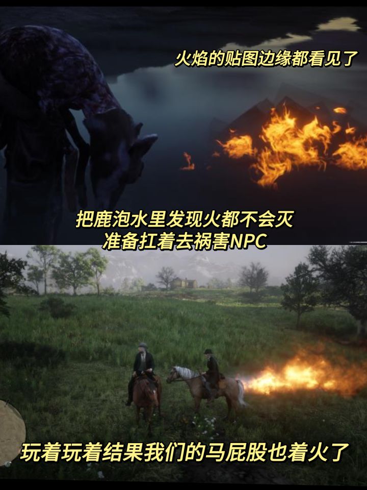 之前玩大表哥时意外发现的bug,先是鹿头上着火了,扔水里都不会灭。
