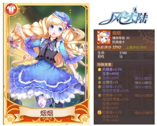 与前几张魂卡不同,少女烟烟的附加属性更偏防御:生命、提升百分比生命、抗暴率、受治疗效果。神官等职业的小伙伴,建议考虑镶嵌烟烟哦~