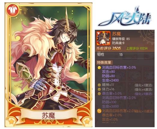 其中苏魔可洗练出高达8%的对高血目标伤害,可以让你在Boss或敌人血量高于50%大幅提升伤害效果,是一张名副其实的输出魂卡哦~