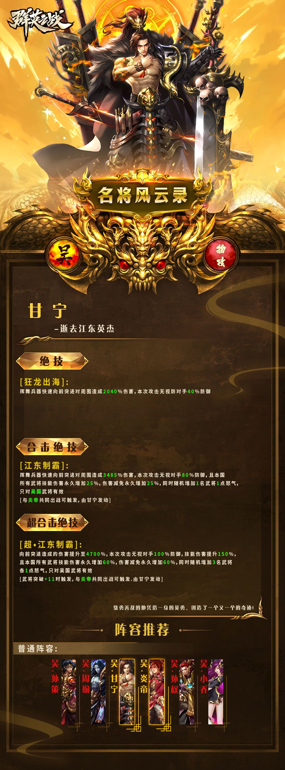 无双金将 ▎甘宁 技能介绍✨