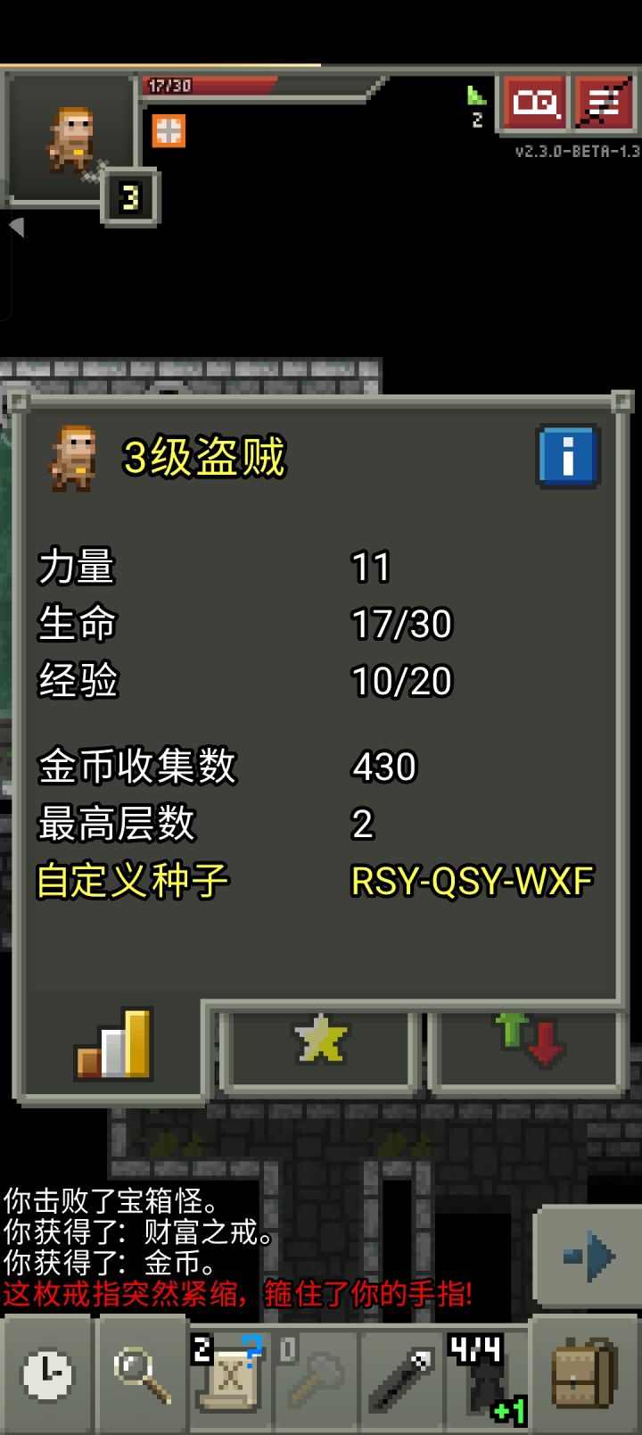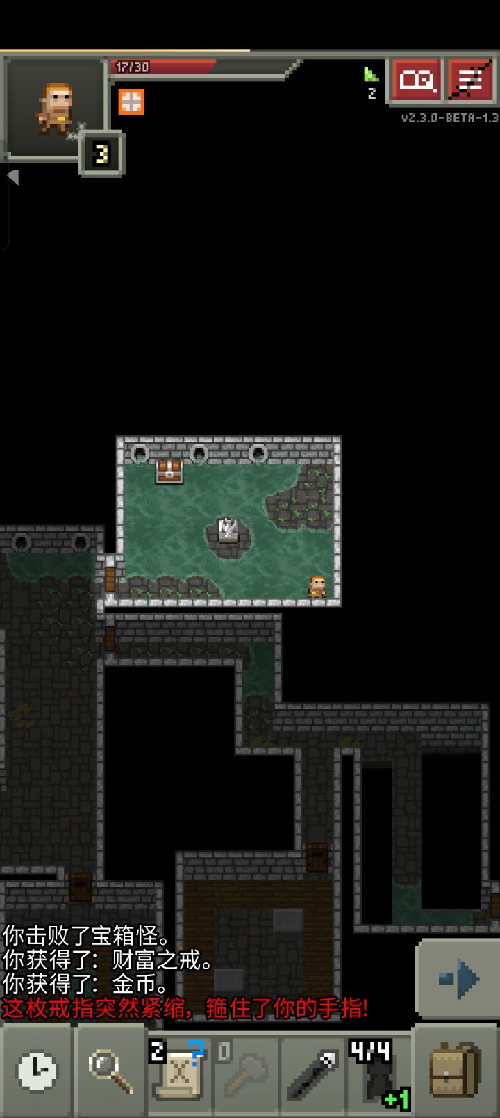 第二层上锁的那个房间,房间里面有两个箱子怪,右边那个是加二的财富戒指,左边那个是零级的,然后这一层水晶箱子房间,也有一个水晶箱子怪。